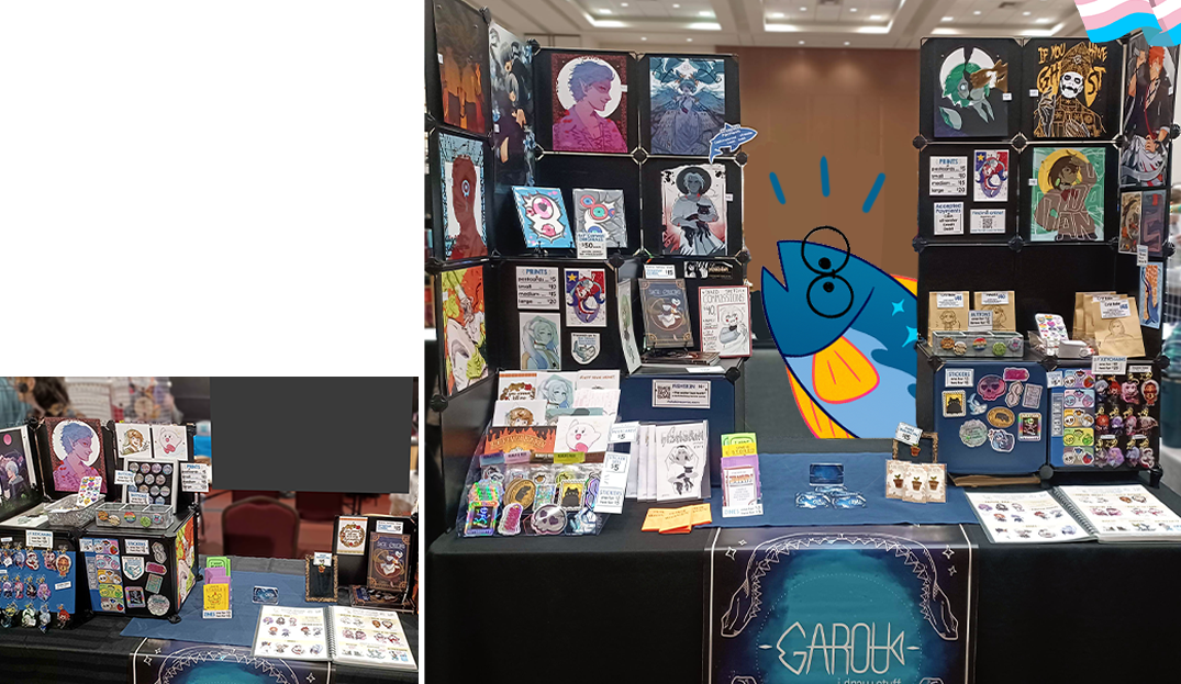 In addition to being a cosplayer, comic creator, and cat parent, they are also professionally accredited in the animation industry.They have worked as a main storyboard artist on Care Bears: Unlock the Magic, and as a builds artist for The Loud House and Clone High, with clients such as Disney, Nickelodeon, Amazon, Warner Bros and more.When they aren't busy sewing new costumes or working on their webcomic FiSHSKiN, Garou collects magikarp cards and likes learning facts about sharks. They are also an avid fan of video games, manga, and tattoos.Garou is the online alias of professional artist, Ky G [They/He]