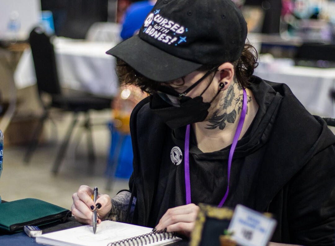 In addition to being a cosplayer, comic creator, and cat parent, they are also professionally accredited in the animation industry.They have worked as a main storyboard artist on Care Bears: Unlock the Magic, and as a builds artist for The Loud House and Clone High, with clients such as Disney, Nickelodeon, Amazon, Warner Bros and more.When they aren't busy sewing new costumes or working on their webcomic FiSHSKiN, Garou collects magikarp cards and likes learning facts about sharks. They are also an avid fan of video games, manga, and tattoos.Garou is the online alias of professional artist, Ky G [They/He]
